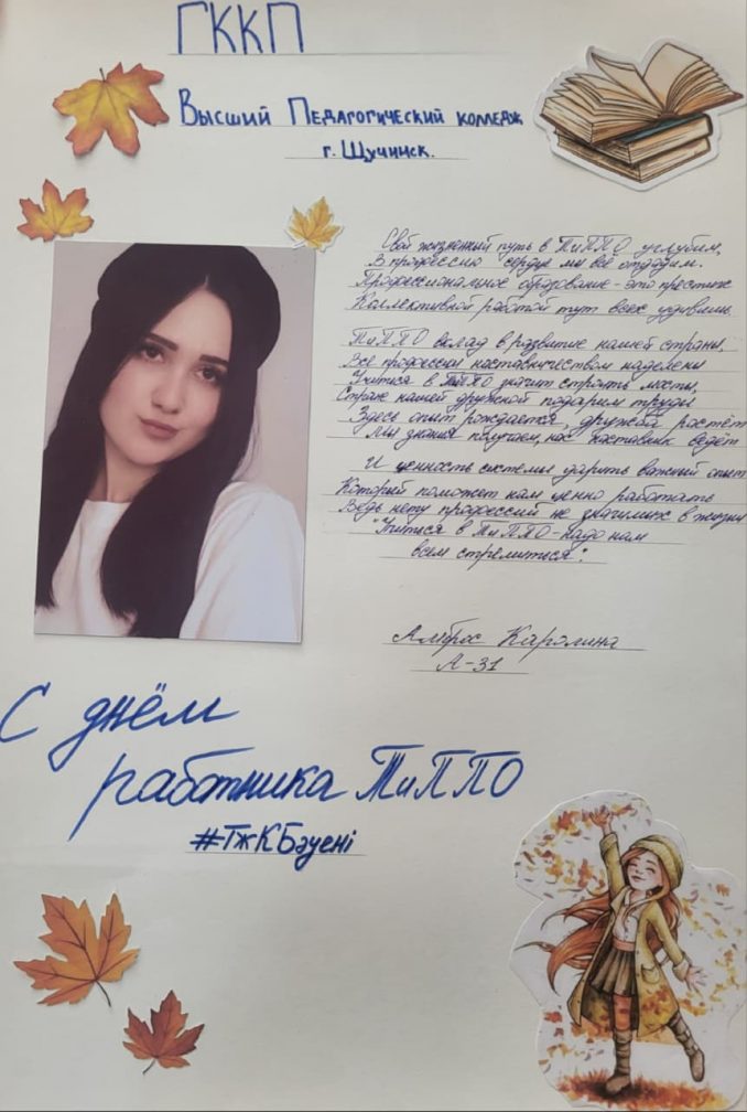 Республикалық онкүндік марафон аясында ТиППО қызметкері күніне орай ГККП Жоғары педагогикалық колледжінің А-31 тобының студенті Амброс К.С. өзінің авторлық «Путь к будущему» атты өлеңін ұсынды. Өз шығармасында ол техникалық және кәсіби, орта білімнен кейінгі білім беру жүйесіне деген сүйіспеншілігін білдіріп, оның беделін, тәлімгерліктің маңызын және ел дамуына қосқан үлесін айқындады. Өлең ТжКБ студенттері үшін ашылатын еңбектің, достықтың және білімнің құндылығын жеткізеді.
